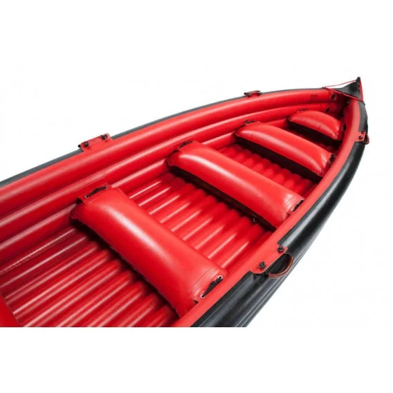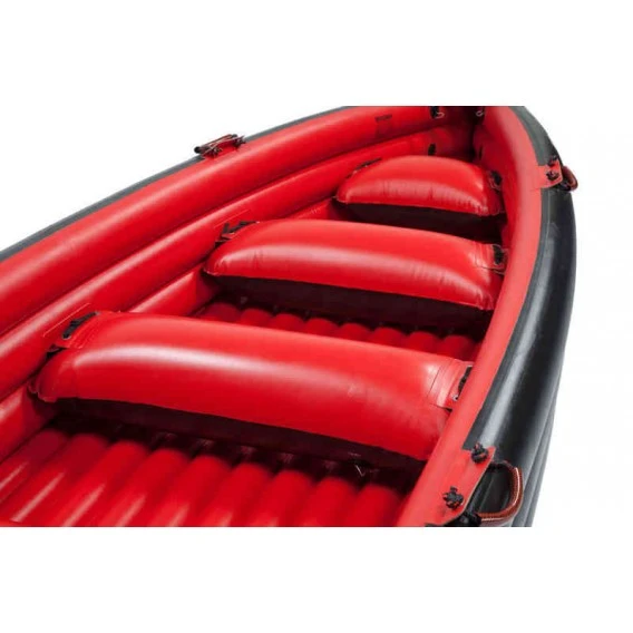 6 mit Gurten fixierte Luftsitzrollen halten das Boot leicht, bieten insgesamt 10 Personen Platz und geben dem Boot zusätzlich Festigkeit, wenn es mal durchs leichte Wildwasser geht.