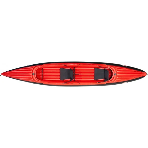 Sehr erfreut. Die aufblasbaren Bug- und Heck-Verdeckteile verleihen dem Kajak hohe Torsionssteifigkeit, schützen vor Spritzwasser und offerieren Stauraum für Reisegepäck oder Campingausrüstung.