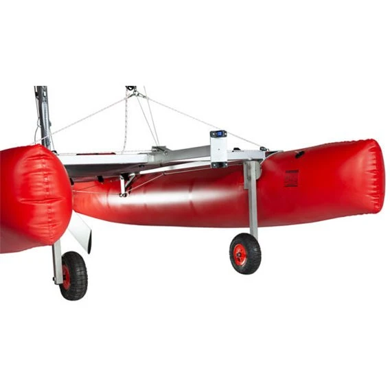Am rückwärtigen Rahmen müssen in serienmäßig vorgebohrte Löcher zwei Halterungen angeschraubt werden. Diese können dauerhaft montiert bleiben. An jede Halterung wird jeweils ein Sliprad angeschraubt. Das Sliprad kann beim Segeln nach hinten geklappt und eingerastet werden. Bei Wellengang ist es empfehlenswert das Rad von der Achse abzunehmen, um Wellenschlag zu vermeiden. Bei Verwendung der ‚Heckstrebe‘ am Modell HURRICANE muss das Rad beim Hochklappen von der Achse abgenommen werden.