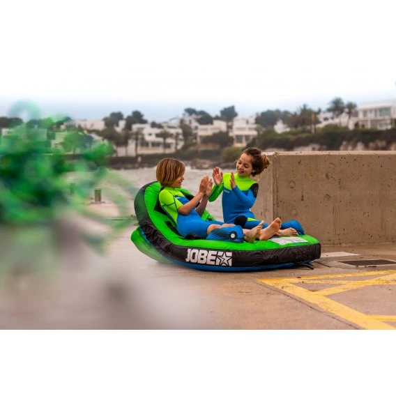 Wie ein wärmender Sonnenstrahl! Das aufblasbare Funtube „Sunray“ aus dem Hause JOBE strotzt vor Energie und setzt beim Rider die Endorphine frei. Das Tube lässt sich vorwärts und rückwärts ziehen und sorgt für jede Menge Spaß. Ganz bequem Platz nehmen, knieend oder sitzend. Entspannend und aufregend. Dieses Wassersport-Gadget zeigt sich von zwei Seiten.